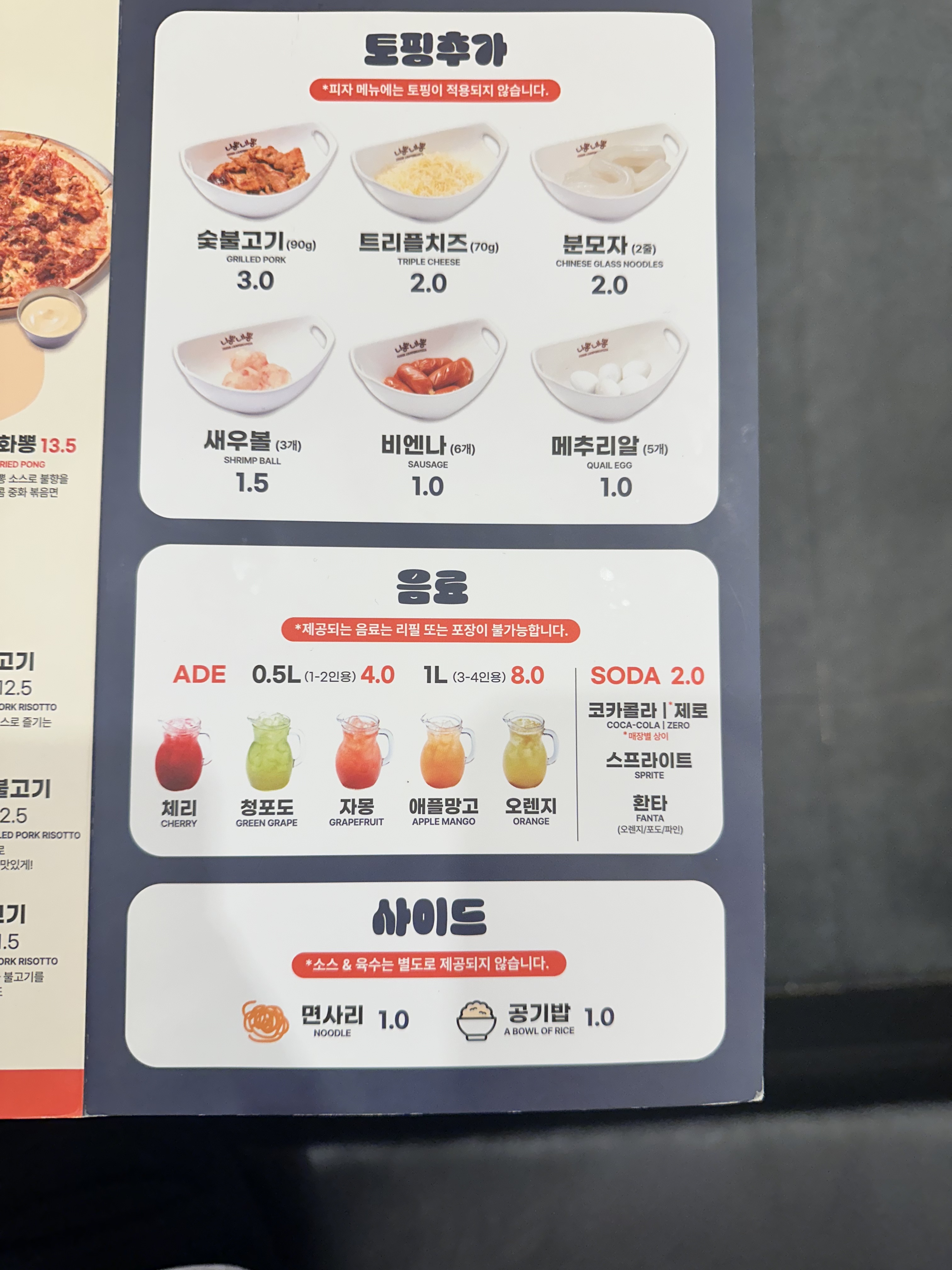대표 메뉴로는 크뽕(크림 짬뽕) 로뽕 (로제 짬뽕) 등이 있으며 밥 버전으로 선택도 가능하고 토핑도 추가가 가능합니다.