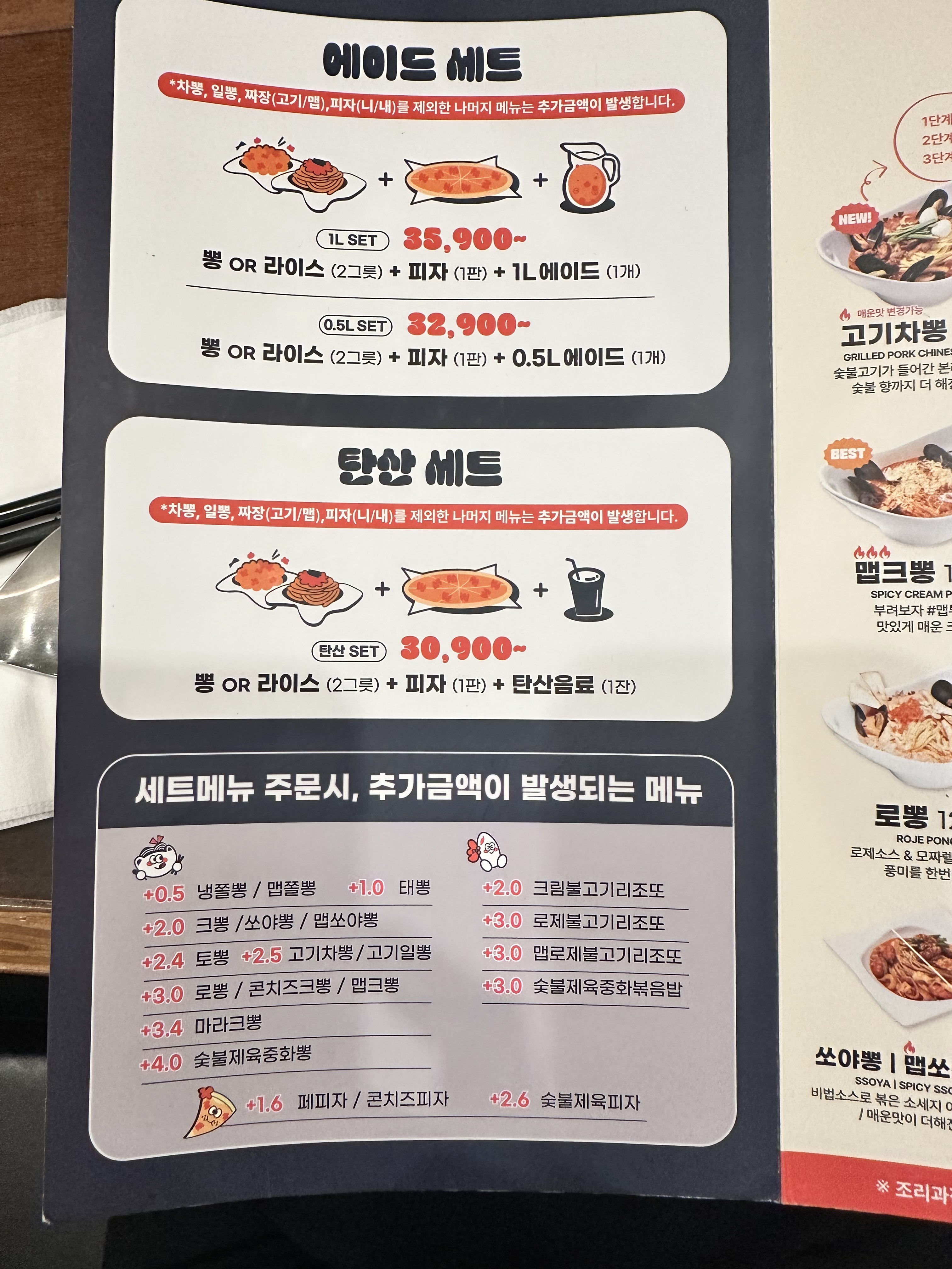 추천 메뉴로는 맵기가 있는 짬뽕 메뉴에 중화할 수 있는 피자 조합이 가장 많이 찾는 메뉴이죠.