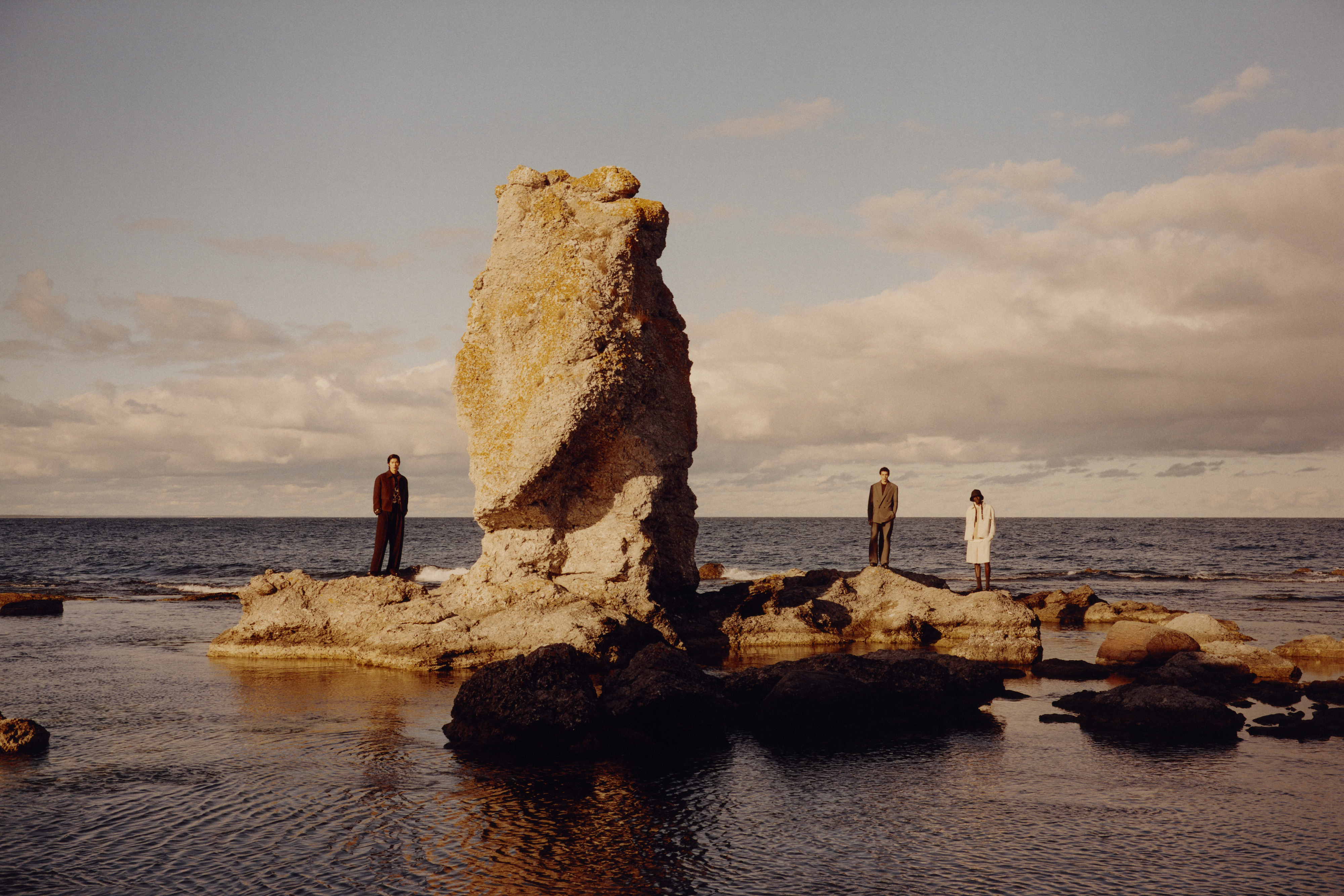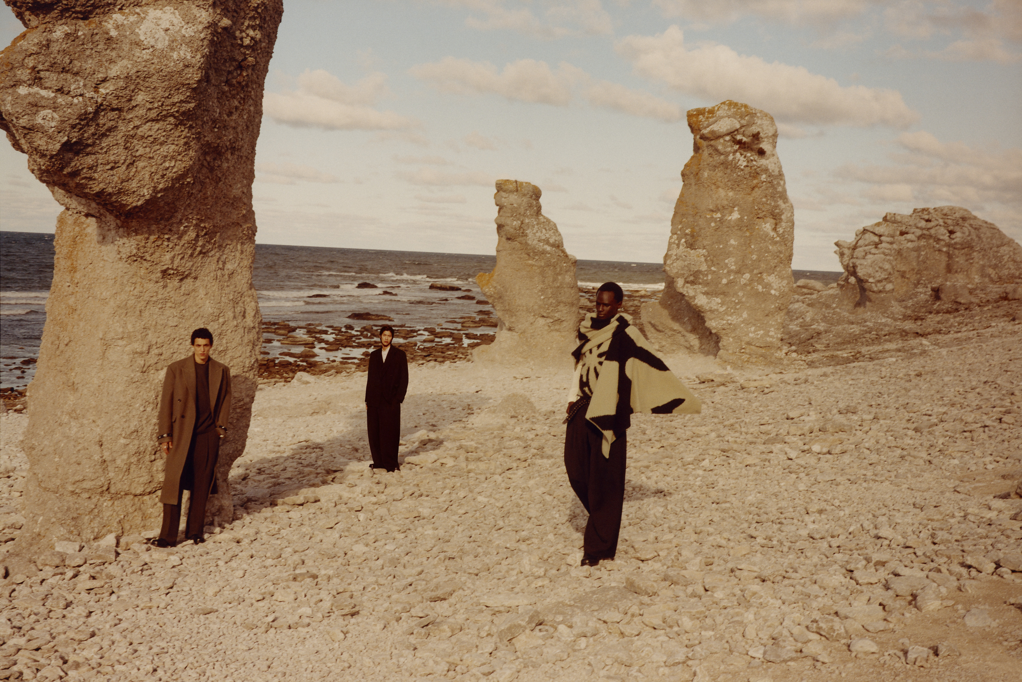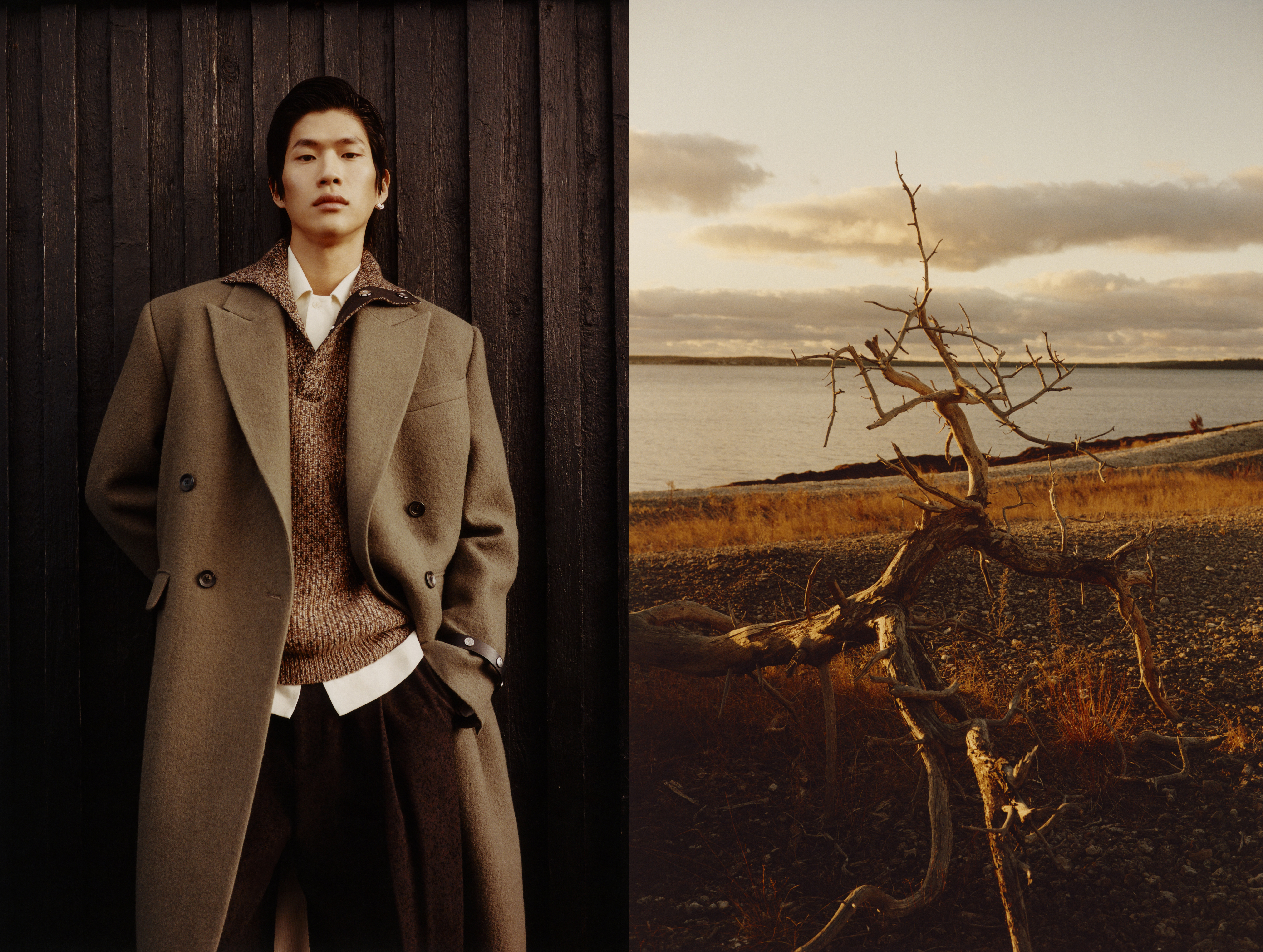 감각적인 소재와 패턴도 빼놓을 수 없었죠. 보풀이 일어난 듯한 카센티노 울 소재의 니트와 헝가리 전통 패턴이 활용된 빅 스카프는 자유로운 분위기를 더해주었습니다. 특히 회색 스웨터와 데님을 매치한 스타일링은 손쉽게 연출할 수 있으면서도 감각적이었어요. 이 외에도 브러시드 코튼 셔츠와 팬츠 세트, 빈티지 텍스타일에서 영감을 받은 자카드 플리스 세트는 두 가지 색상으로 구성되어 컬렉션의 분위기를 돋보이게 했습니다.