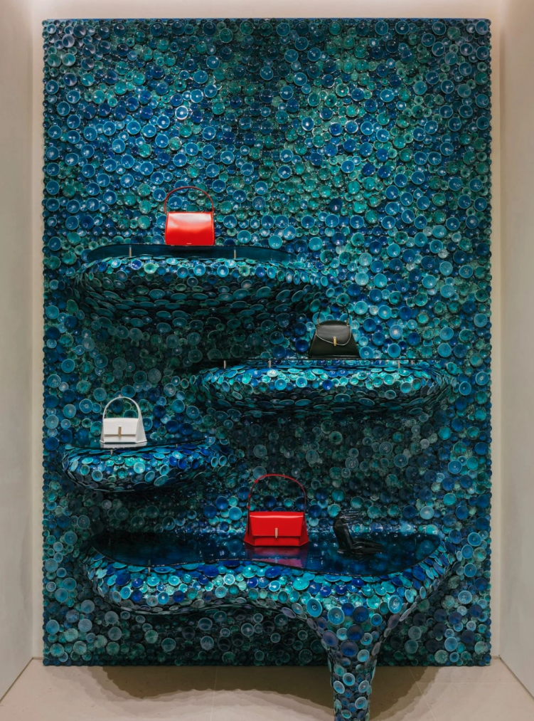 반 두이셀 X 자라홈 콜렉션 중에서빈센트 반 두이센이 디자인한 밀라노 페레가모 스토어 안에 위치한 안드레아 만쿠소의 도자기 벽