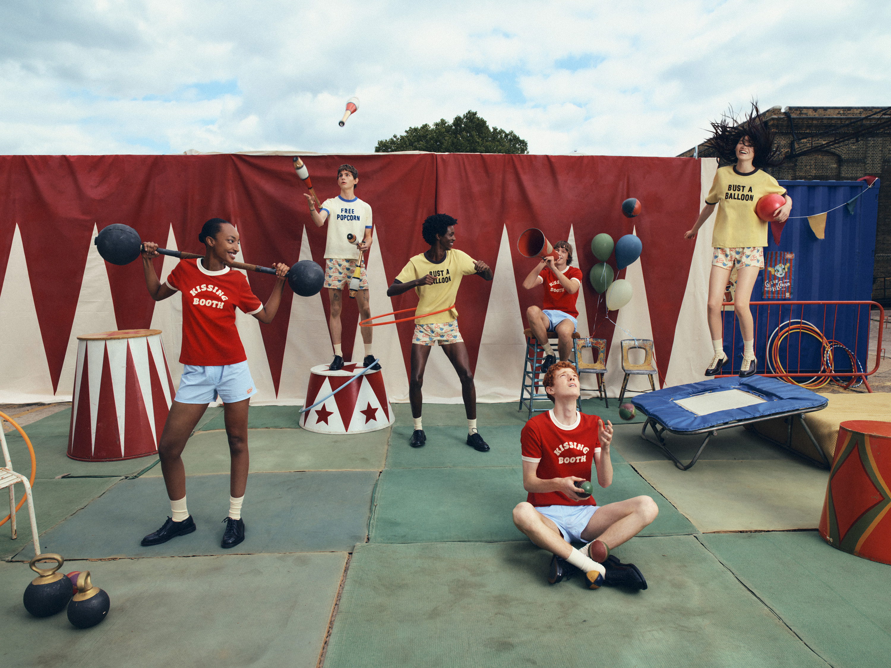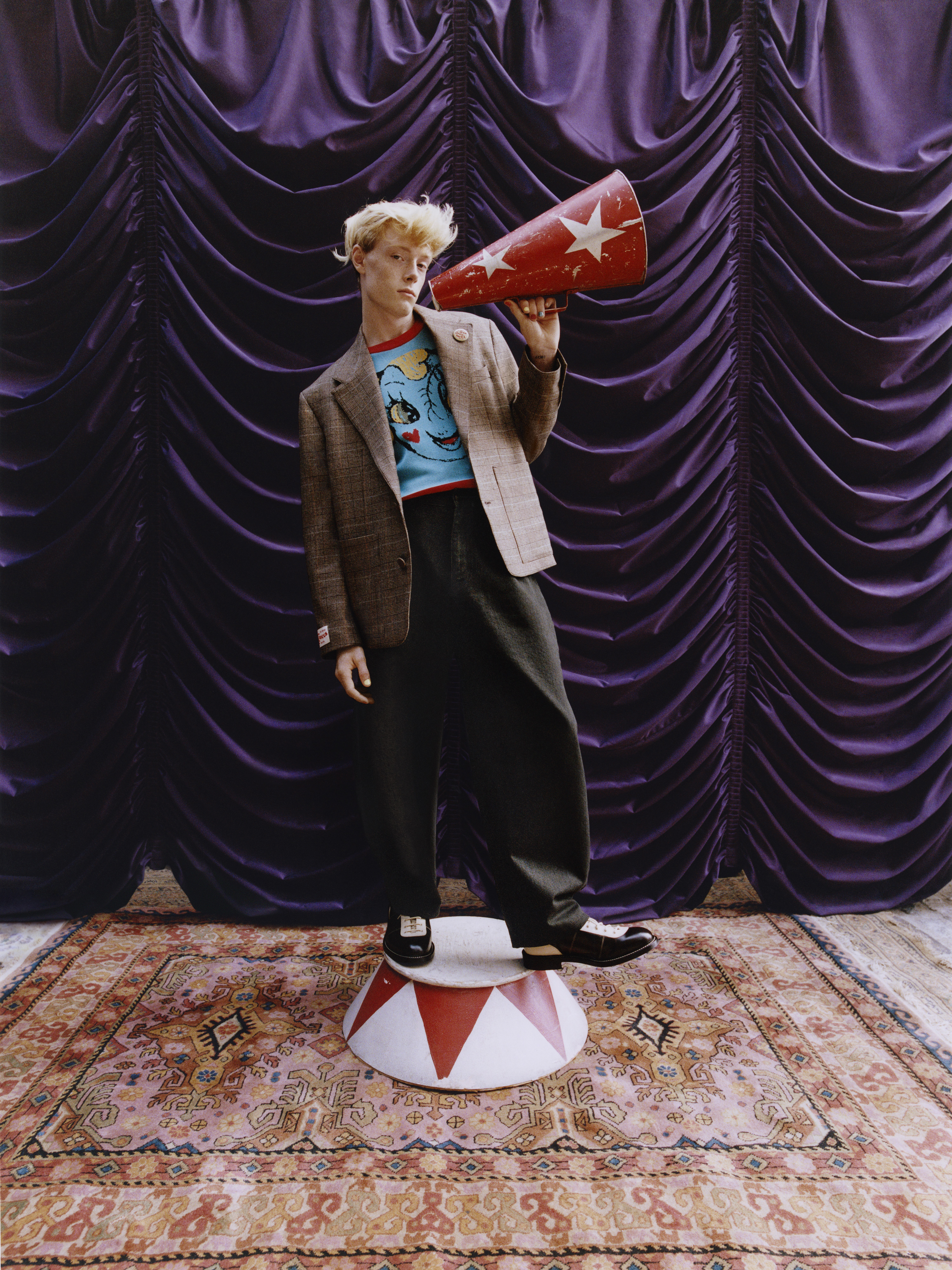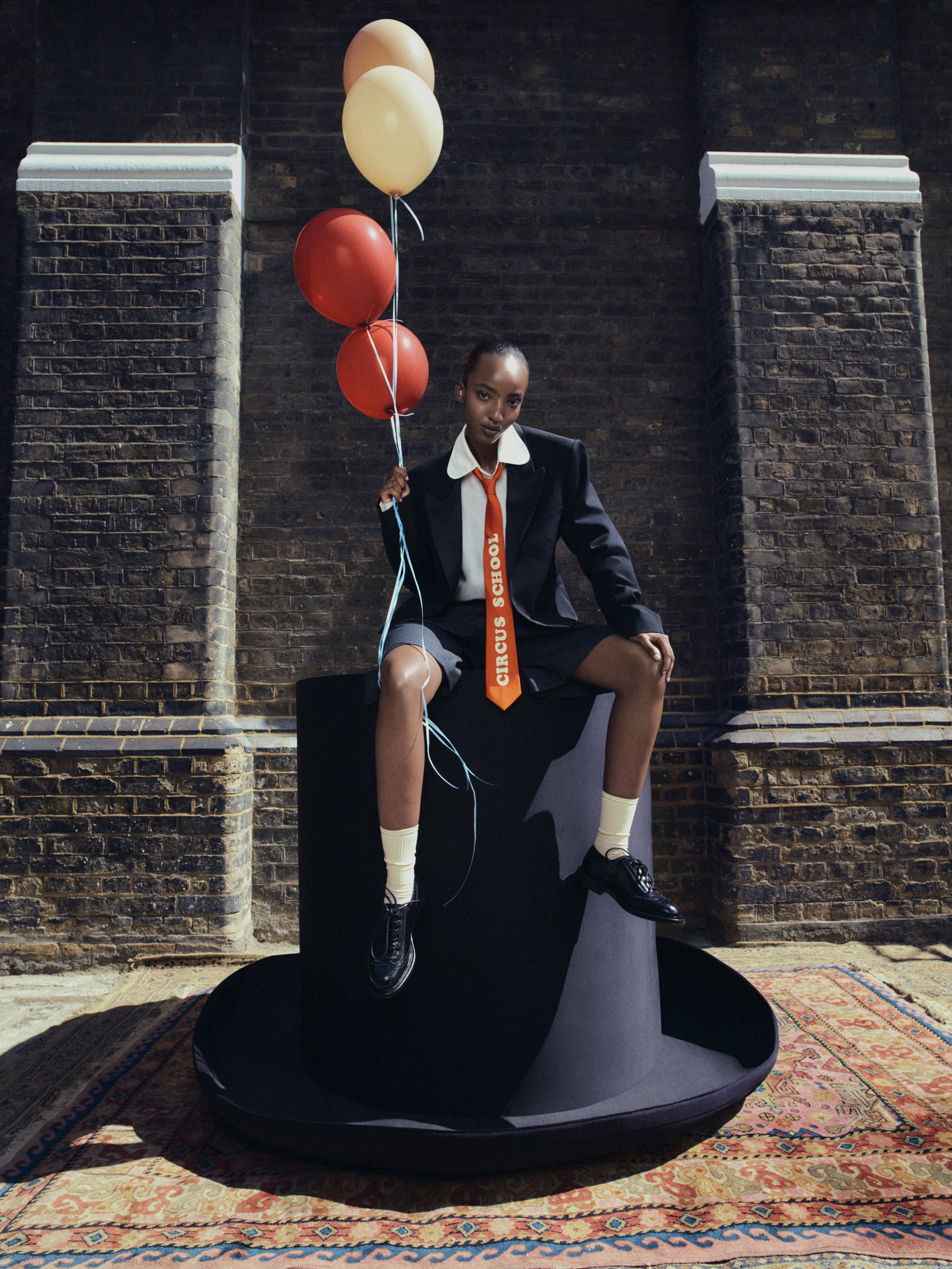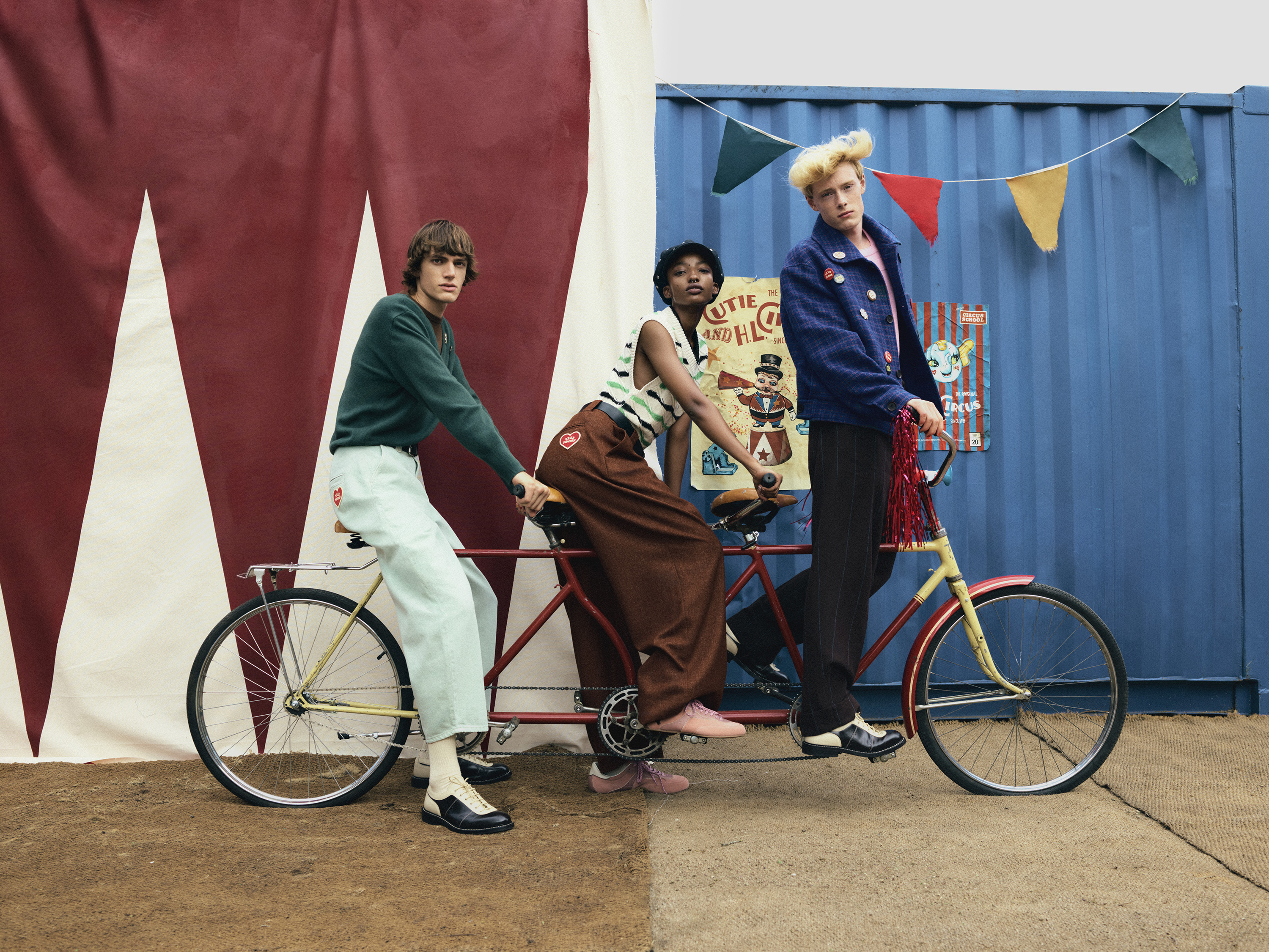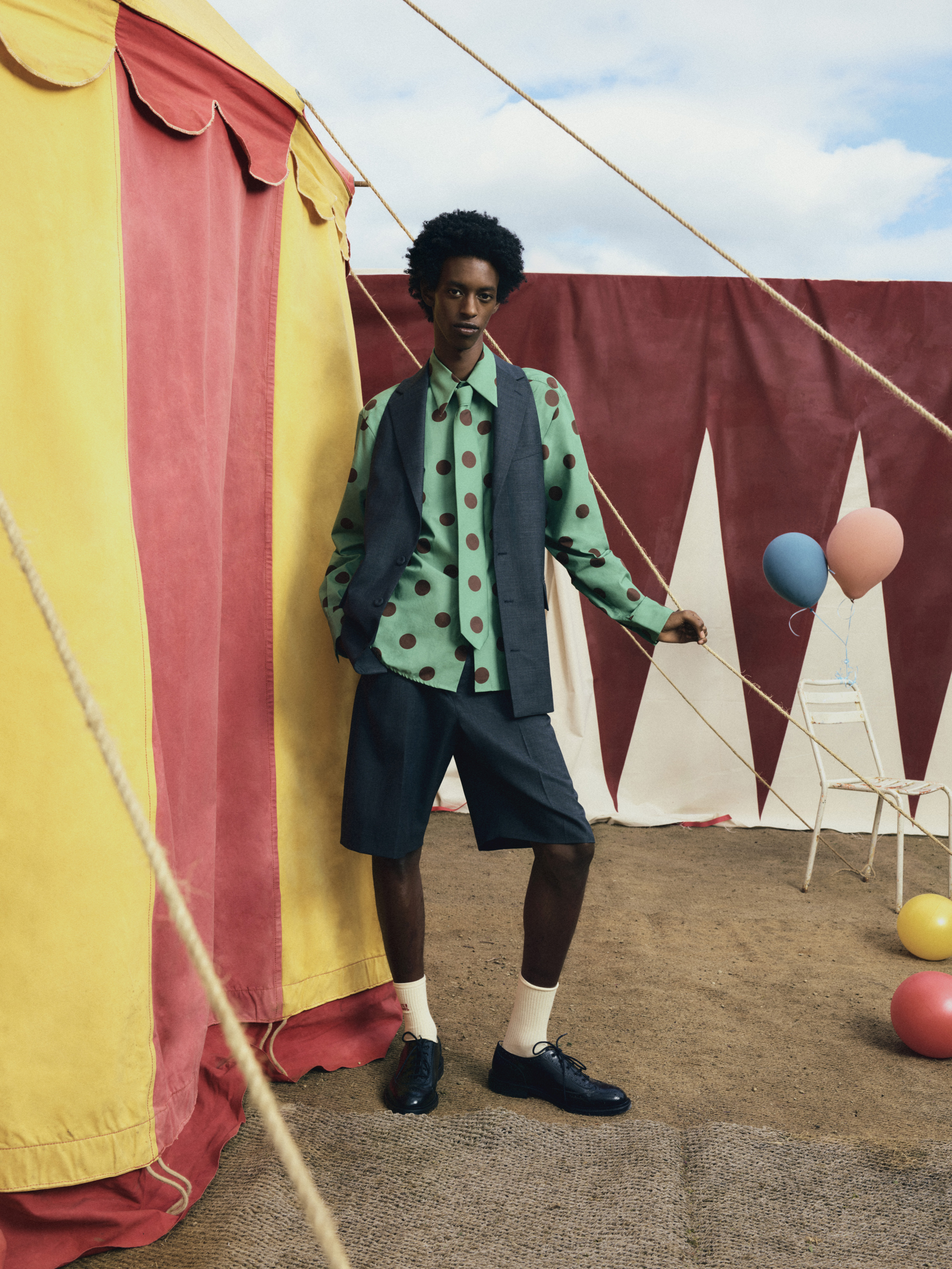 링 마스터 의상에서 착안한 크롭 블레이저나 서커스 광대의 바지를 연상시키는 통바지 같은 디자인은 놀이공원과 같은 즐거움을 전하는 것이 특징입니다. 또한, 아이샤 나기에바(Aysha Nagieva)와의 협업으로 서커스 감성을 담은 수채화 일러스트레이션이 컬렉션에 활기를 더했습니다. 우리나라 언론에서도 큰 주목을 끌었습니다.