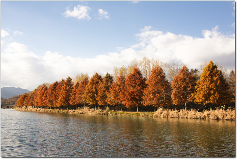 죽녹원을 뒤로 하고, 메타세콰이어랜드로 발길을 옮겨보세요. 1972년 담양과 순창을 연결하는 8키로 구간에 가로수를 심은 울창한 산책로입니다. 그 당시에 심은 묘목이 자라서 20-30센치의 키다리 나무가 되어준거죠. 가을의 이곳은 단풍 터널을 만들어주고 담양을 대표하는 아름다움이라고 말할수 있습니다. 길게 뻗은 메타세콰이어 나무들이 도열한 이곳은 담양의 가을을 더욱 특별하게 만들어 줍니다. 나무들이 길게 늘어선 길을 걷다 보면, 마치 시간이 멈춘 듯한 착각에 빠지게 됩니다. 가을의 따스한 햇살이 메타세콰이어 나무 사이로 스며들어 만들어내는 풍경은 황금빛으로 물들어 가는 자연의 예술입니다. 나무 아래에서 가을의 햇살을 즐기며 산책을 하면, 가슴 속까지 시원해지는 기분을 느낄 수 있습니다.