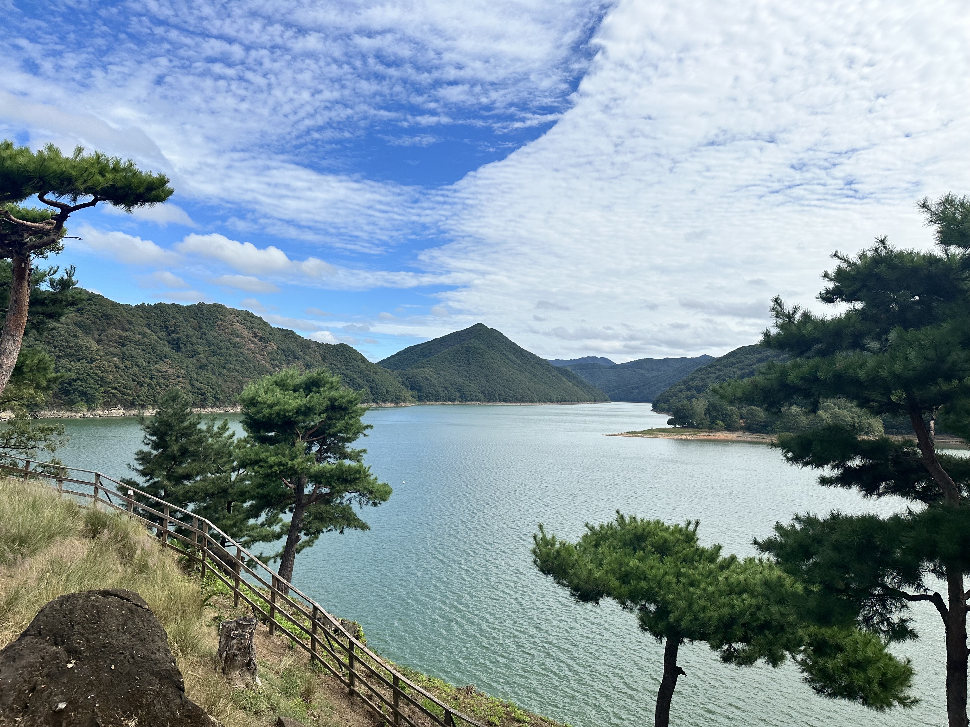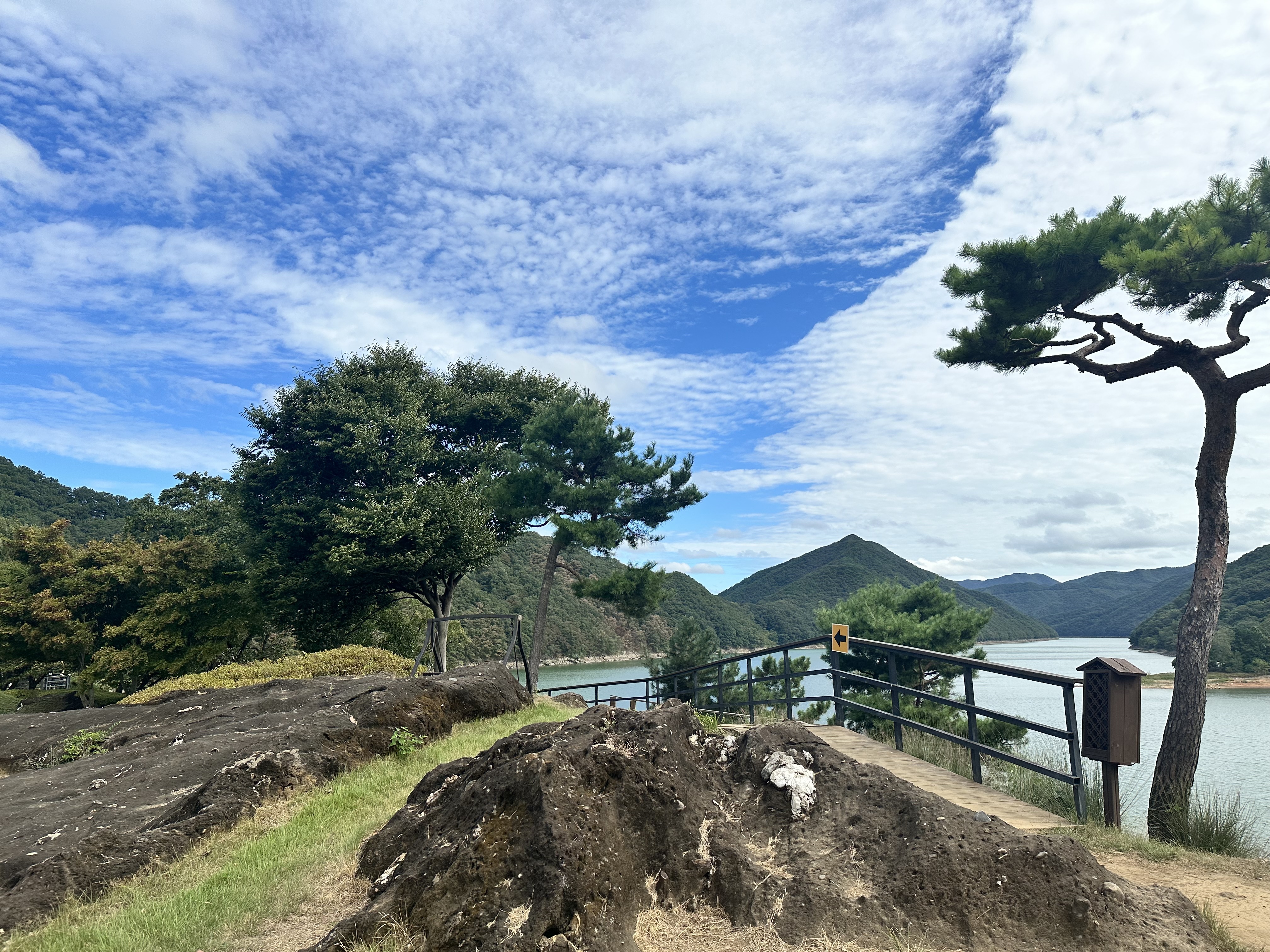 충북 옥천에 위치한 "천상의 정원"은 대청호를 배경으로 한 아름다운 자연 명소입니다.