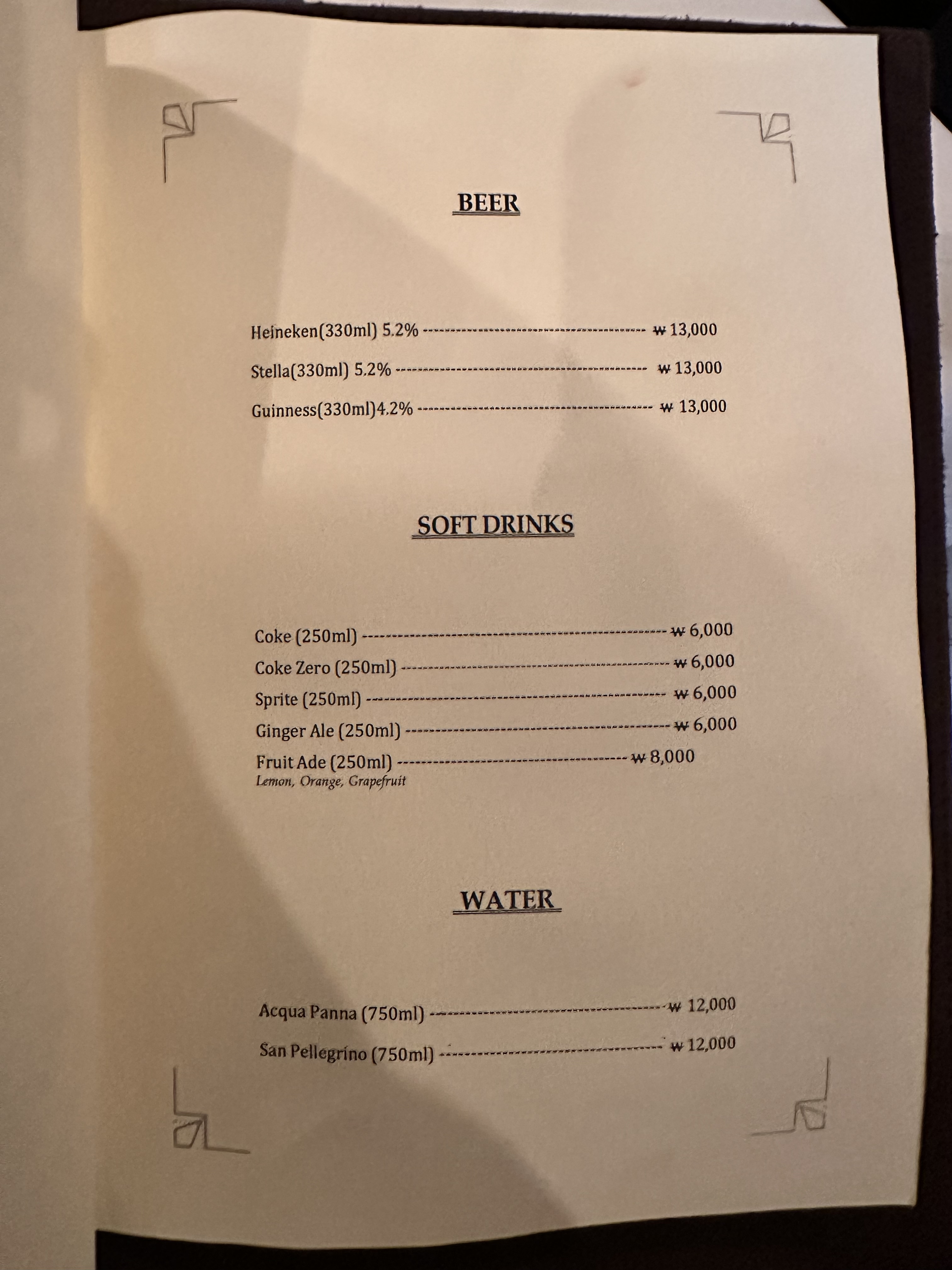 볼트 스테이크 하우스는 와인뿐만 아니라 다양한 시그니처 음료도 제공한다. 특히 위스키나 칵테일 등의 음료는 단순히 곁들임을 넘어, 그 자체로도 충분히 즐길 만한 가치가 있다. 볼트에서만 경험할 수 있는 차별화된 칵테일은 새로운 미식 경험을 제공하며, 이곳을 찾는 이유 중 하나로 꼽힌다.