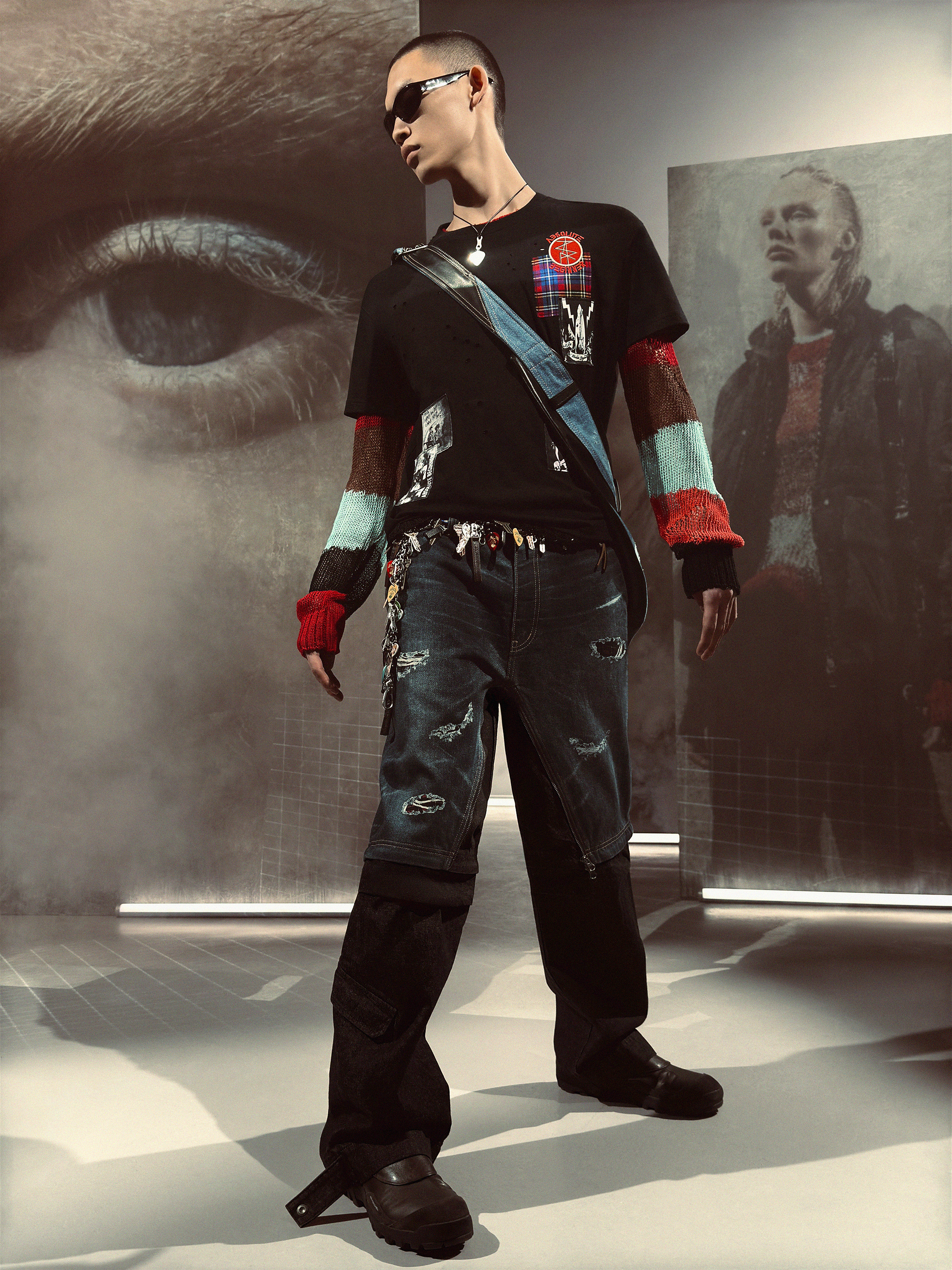 이번 ZARA X ANDERSSON BELL 협업 컬렉션은 ‘Absolute Beginner’라는 주제에 걸맞게, 대담한 스타일링과 펑크적인 요소들이 돋보인다. 구조적인 아우터, 그래픽적인 티셔츠, 거친 워싱의 데님과 절개 디테일이 강렬한 인상을 남긴다.